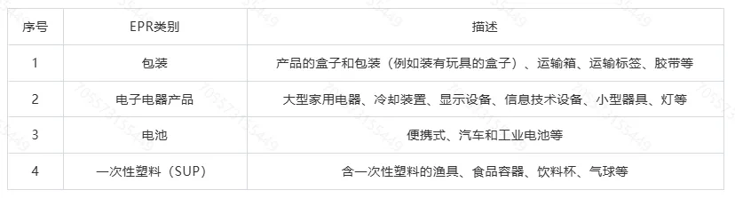 目前主要适用的商品类别有以下类别,其中常见的是包装法和电池法,由于注册流程复杂,因此建议丹麦境外商家可以通过第三方服务商或委任丹麦当地授权代表如跨规盈,协助商家完成EPR合规注册和申报。