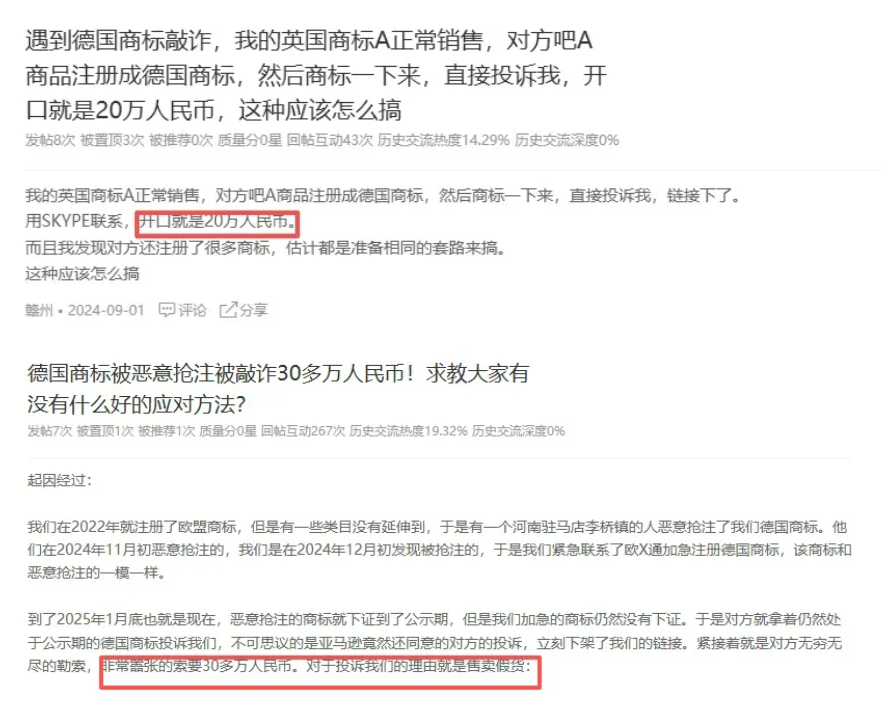 今年以来,诸多卖家在社交平台控诉其德国商标被恶意抢注。且这些卖家大多手握欧盟商标,却被抢注方投诉下架。