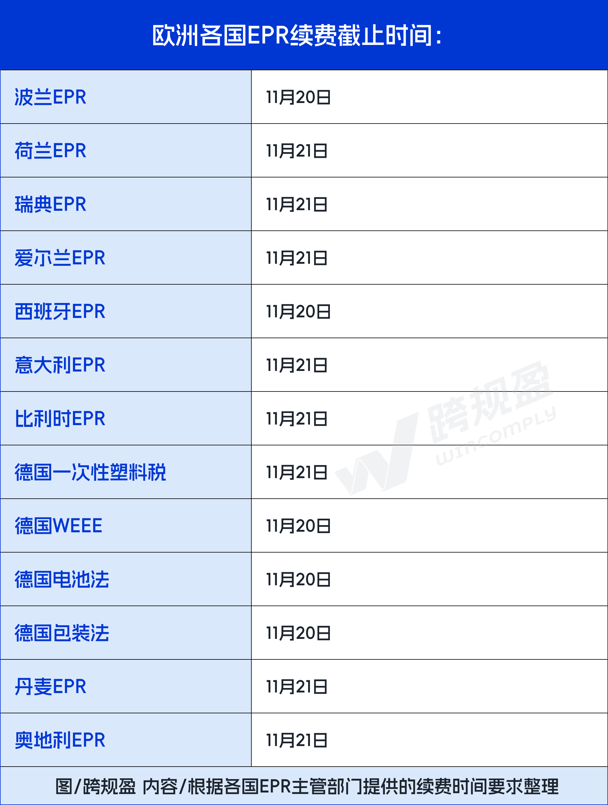 不同国家及不同类别的EPR项目,其续费时间存在差异化要求。