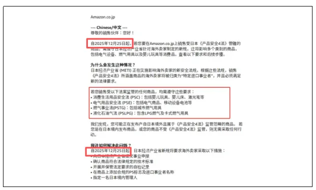 2025年12月25日起,卖电器、燃气用具、婴儿玩具这些消费品的,除了要符合老规矩,必须得找个日本境内管理人(简称“日代”)!如果生效后,日本站的卖家仍没有“日代”,亚马逊店铺都没法正常开。