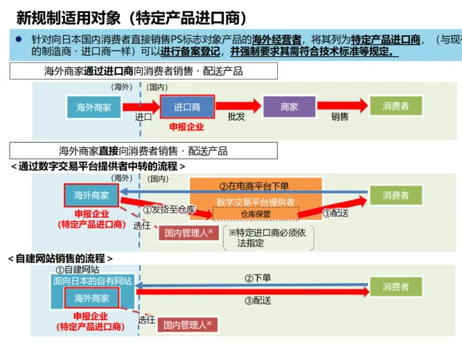 所有通过亚马逊日本站、Temu日本站、速卖通日本站等电商平台,或通过自建网站直接向日本消费者销售“PS标志强制认证品类”的海外卖家,均需指定日代。涉及品类以《产品安全4法》明确的电气设备、燃气用具、婴幼儿玩具等为主。