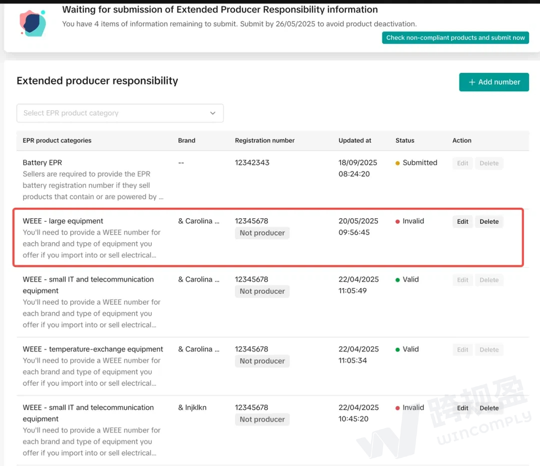 请注意:EPR注册的法人实体必须与平台登记的法人实体(公司名称)完全一致才可通过验证。