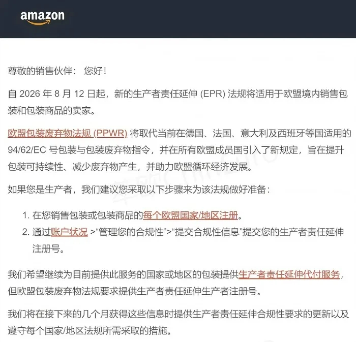 泛欧权益:Pan-EU卖家需完成五国PPWR合规,否则直接失去泛欧运营资格,影响整体布局。