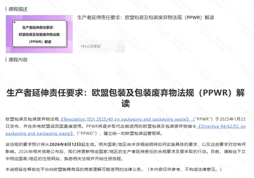 待2026年与包装代扣代缴相关的具体规则和平台要求进一步明确后,平台将同步更新并告知后续安排。卖家可以先自查相应销售国家的包装EPR注册要求。