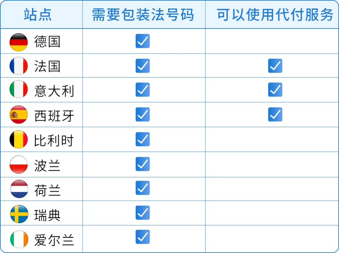 部分站点亚马逊仍提供代扣代缴服务,但卖家也必须拥有一个有效的包装法注册号。
