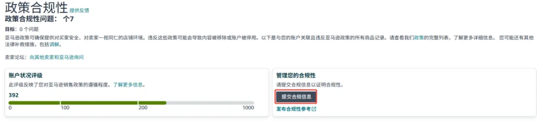 绩效>账户状况>监管合规性>点击右上角【提交合规信息】>选择“EPR合规-包装”>上传号码。(注意:每个站点需单独提交对应的号码)