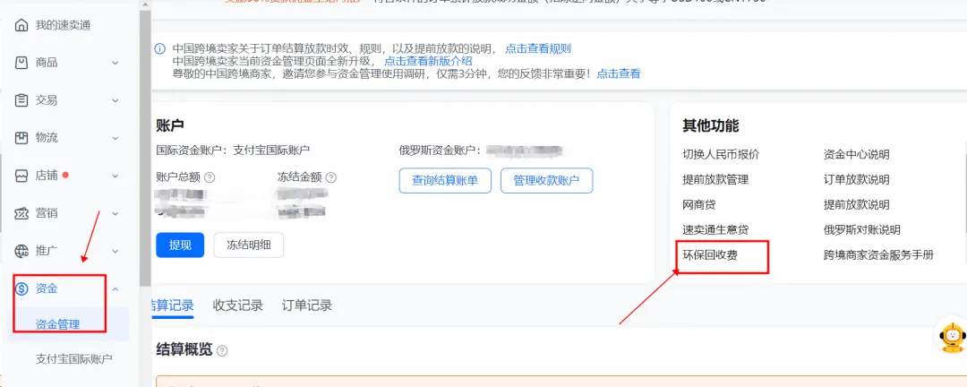 您可以在卖家后台,查询店铺在线商品对应的“收费标准”,以及平台代扣款项的“扣费记录”(路径:商家后台-资金-资金管理-环保回收费)