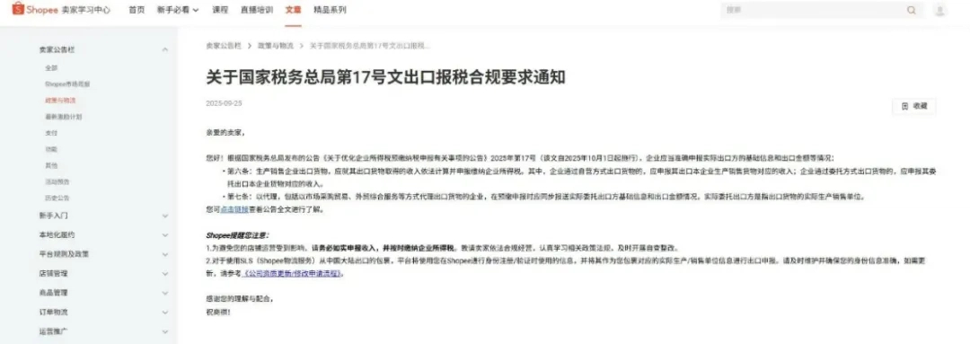 时间来到了10月,此前国庆假期期间,虽然处于假期跨规盈依然收到不少卖家咨询,因为节前陆陆续续不少卖家收到了平台发的公告。主要是《关于互联网平台企业报送涉税信息有关事项的公告》(国家税务总局公告2025年第15号)&《国家种务总局关于优化企业所得际预食幼种申报有关事项的公告》(国家税务总局公告2025年第 17号)规定。