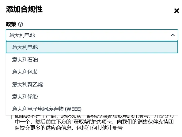 自2024年11月15日起,所有在意大利销售的适用商品必须符合当地生产者责任延伸(EPR)要求。
