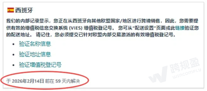 您是否已收到亚马逊关于西班牙欧盟增值税(ROI)合规的官方通知?这不是普通提醒,而是强制性合规要求。若未能在平台规定的截止日期前完成,您的业务将面临以下直接风险: