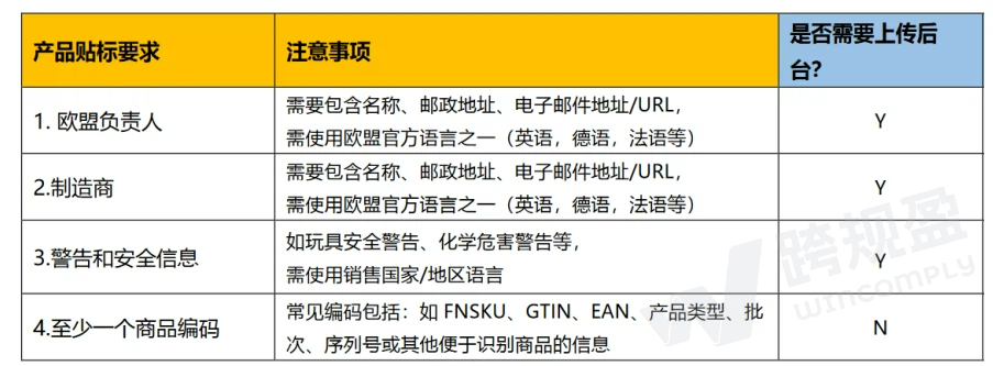 (1)GPSR:2024年12月13日前必须完成欧盟负责人注册、标签制作与信息上传。