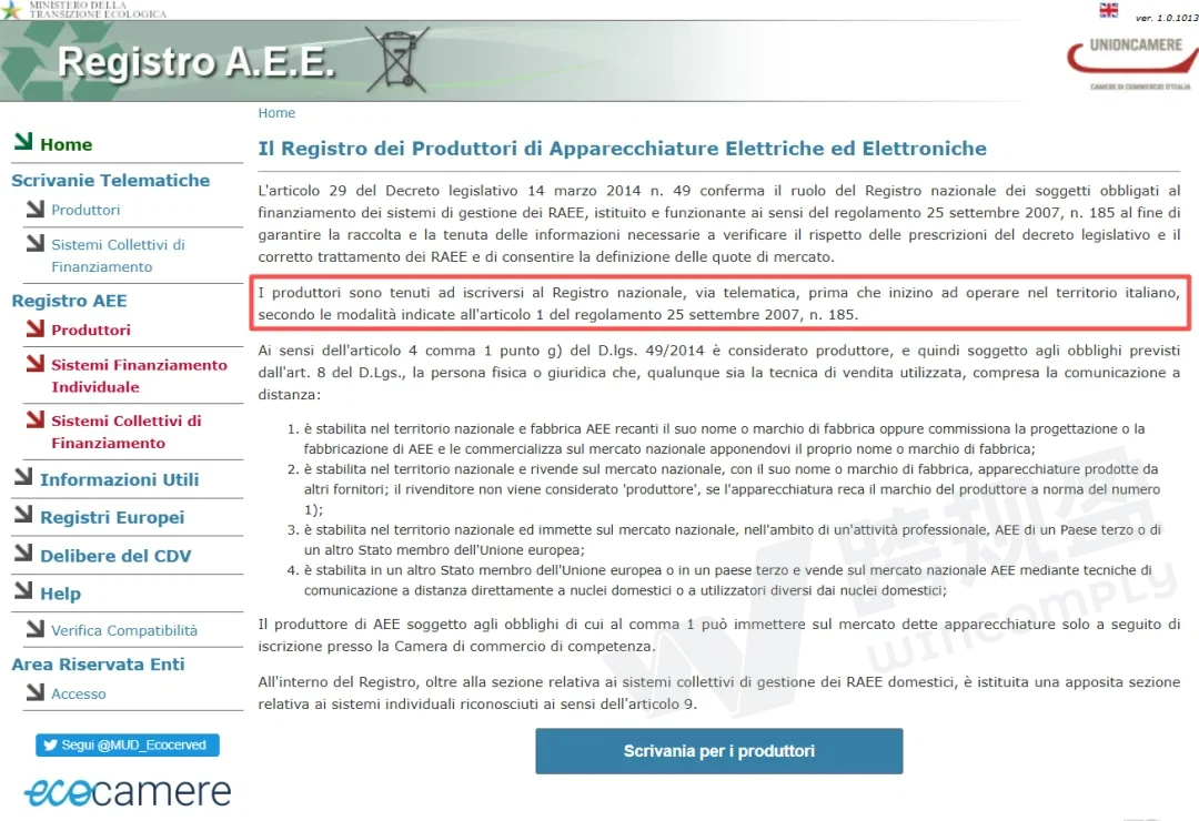 两大平台接连发布合规提醒,意味着意大利EPR要求在平台端进入实际执行阶段。而这一系列举措的背后,是意大利国家法规的明确约束:所有生产商必须先在意大利国家登记册中完成注册,才能将相关产品投放到意大利市场。
