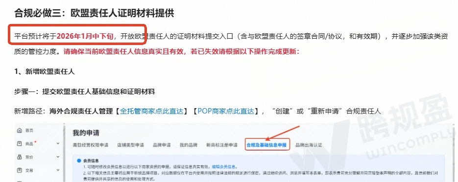 1月中下旬将正式开放欧盟责任人(欧代)证明材料提交入口,所有销往欧盟及英国(含北爱尔兰)的商品,必须按要求上传有效欧代协议,未按时合规的商品将面临前台屏蔽、入仓拦截,甚至失去欧洲市场经营资格,卖家务必抓住最后准备窗口期!