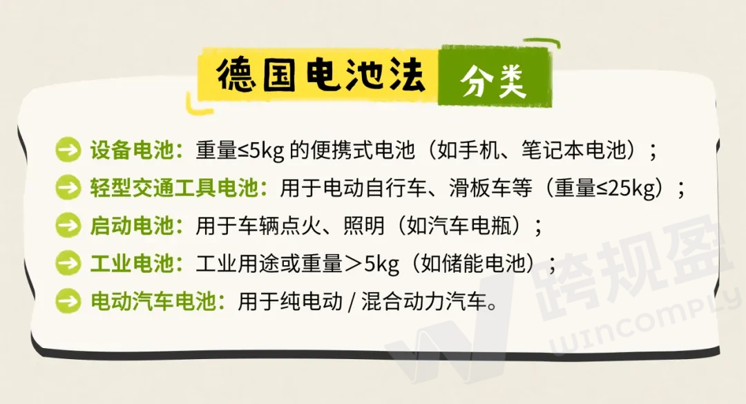 根据产品用途和规格对照德国电池法分类,确认电池类别并准备相应的合规数据材料。