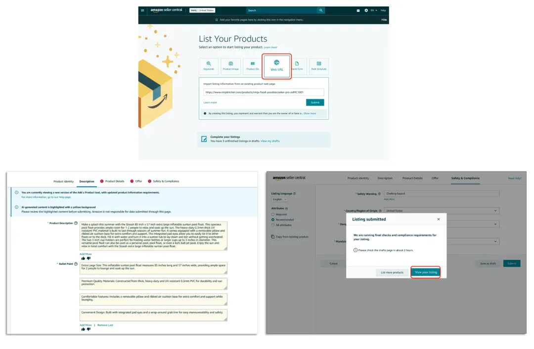 但是现在,卖家在创建新Listing时,需提交合规材料,审核通过之后亚马逊才会自动发布Listing。该要求目前只针对新Listing,其它Listing不受影响。