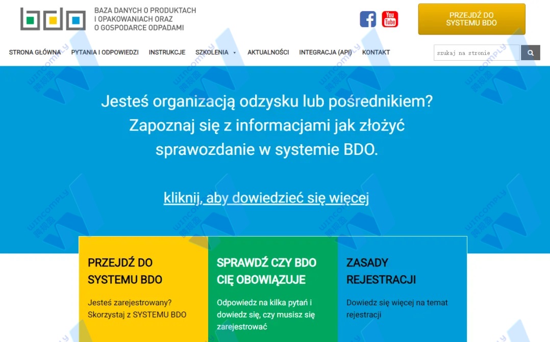 BDO,即波兰语“Baza Danych o Produktach i Opakowaniach oraz o Gospodarce Odpadami”的缩写,它是波兰政府所构建的环境管理数据库。旨在监督企业在产品及废弃物管理中的合规性。若您在波兰市场销售产品,尤其是涉及包装、电子设备、蓄电池、轮胎、润滑油等领域,则需要通过BDO进行注册、申报和报告,以确保其遵守EPR要求。