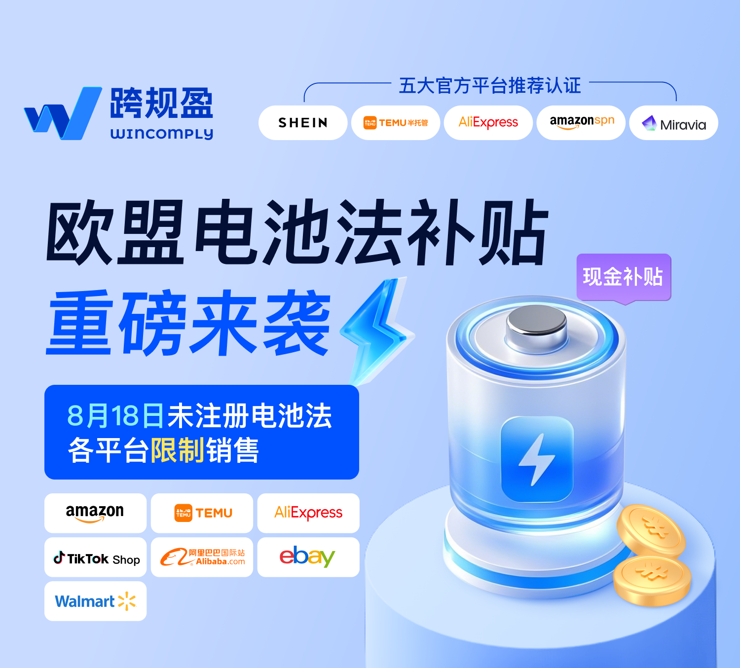跨规盈重磅推出:欧盟电池法合规补贴