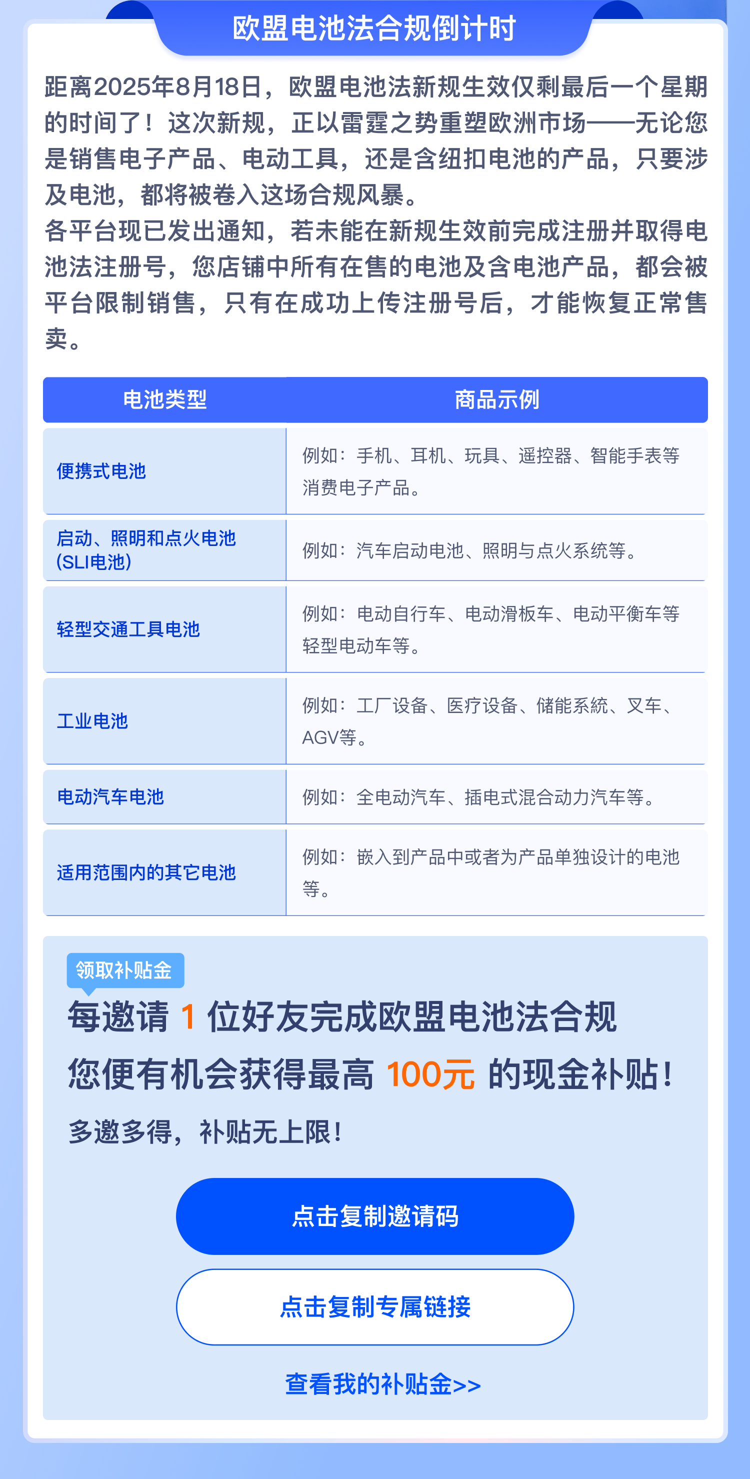 每邀请1位好友完成欧盟电池法合规